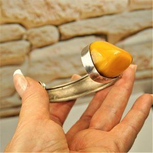 BOLD AMBER 925 SILVER ASYMMETRICAL BRACELET, Egg Yolk Amber Stone, Rare to Find