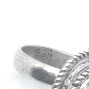 Bali designed Bohemian style ring with 2 inset champagne stones. Stamped. Size 7.5. Weight: 9.9g. Pre-owned. See pictures for details.