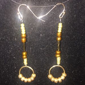 Rose gold and brown glass seed bead earrings on brass French hooks handmade