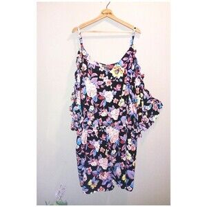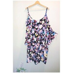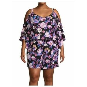 BOLD elements Artistic Rose Black Floral Romper Cold Shoulder w/ Adjustable Straps Elastic Waist Lining below Waist