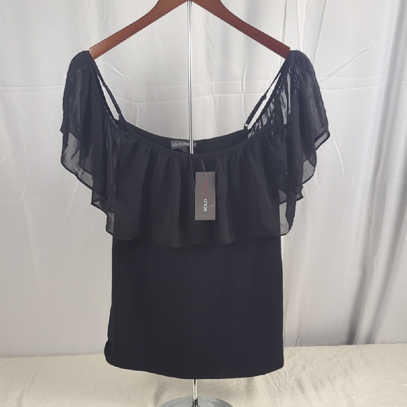 BOLD elements Black Off-Shoulder Ruffle Top