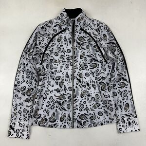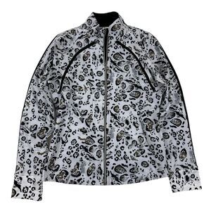 BOLLE Off-White Animal Print Full Zip Lightweight Jacket Thumbholes Stretch Sz M