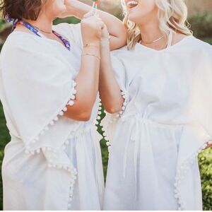 Bollie | Cinch Waist Swim + Beach Cover Up w/ Tassel Detail, White, Size L