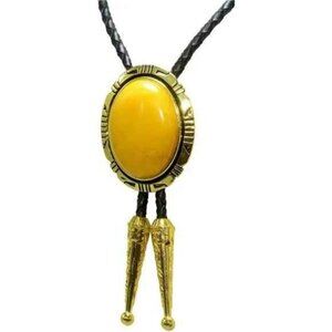 BOLO Tie Natural Colors Stone Western Celtic Yellow Stone Golden