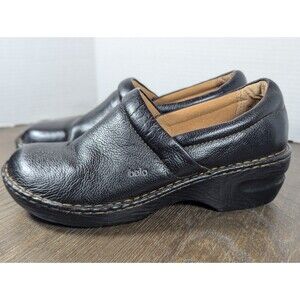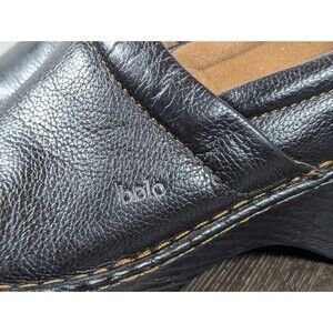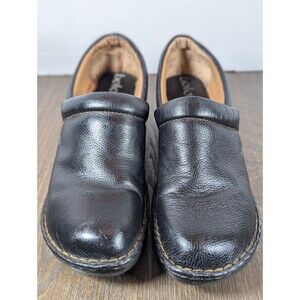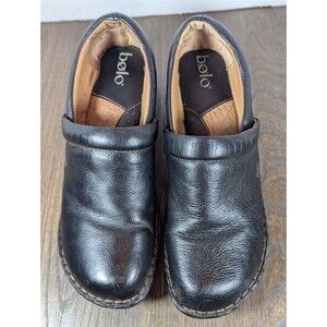 BOLO by Born Leather Slip-On Clogs Mules Womens 11 Black Pebbled Cushioned Logo