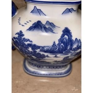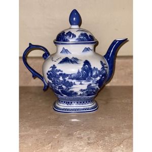BOMBAY COFFEE/TEA POT 52 OZ BLUE WILLOW ORIENTAL LANDSCAPE SCENE BLUE & WHITE TEAPOT.