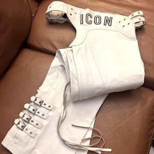 BOMBSHELL by ICON White Leather Chaps Size XL