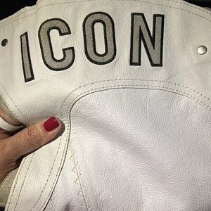 The Bombshell WHITE chaps from ICON more than live up to their over-the-top name because not only do you feel like a bombshell wearing them, get bombshell style attention when you do - probably because theyre eye-catching in white. The chaps are made of a thin 1.0-1.2mm premium grade leather so theyre pretty lightweight, but that makes them easy and comfortable to wear. The buckles, zippers and snaps are all top notch and sturdy...