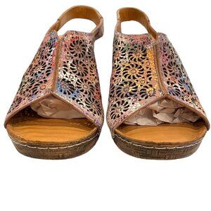 BONAVI Genuine Leather Lace Cutout Slingback Wedge Open Toe Sandals