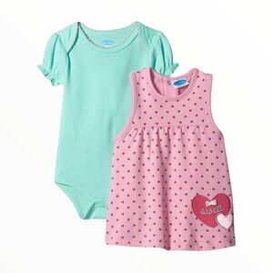BON BEBE | Pink | French Terry Jumper Set with S/s Lap Shoulder Bodysuit