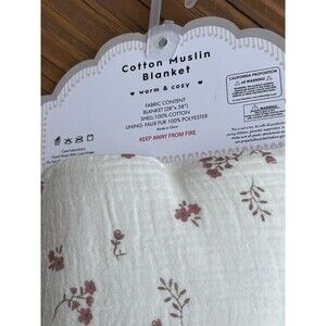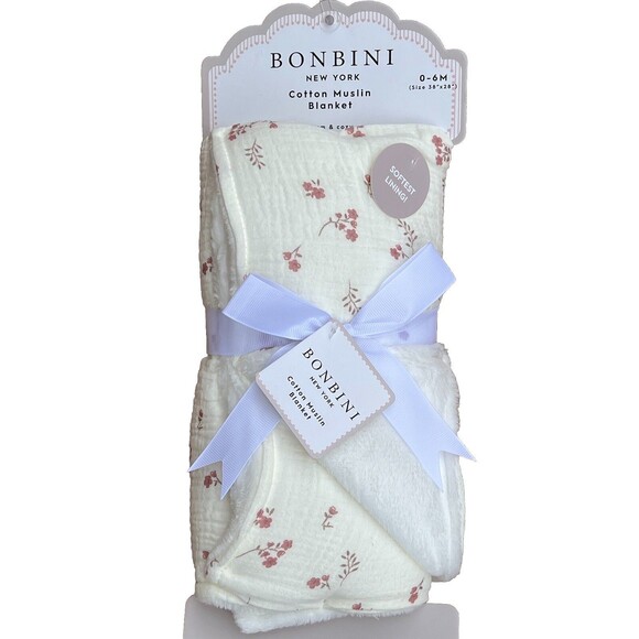 BONBINI Cotton Muslin Baby Blanket Stepping Stones Tiny Flowers Ivory Reversible