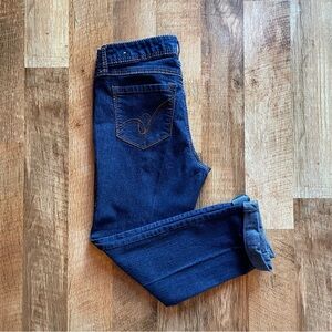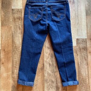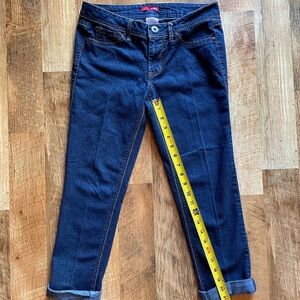 These BONGO jeans showcase a stylish cropped design in a deep blue hue. The medium weight denim provides a smooth texture, perfect for everyday wear.