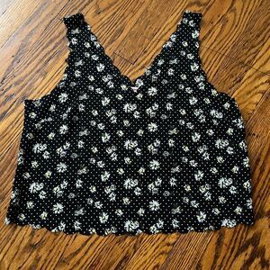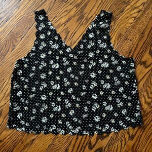 BONGO Dandelion Floral Polka Dot Print Black V-Neck Scoop Hem Tank Top Woman's S