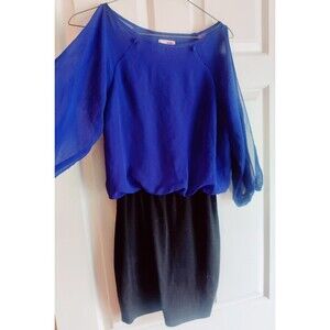 BONGO Dress Blue Black Split Sleeves Short Size Juniors S Small Bodycon Pencil