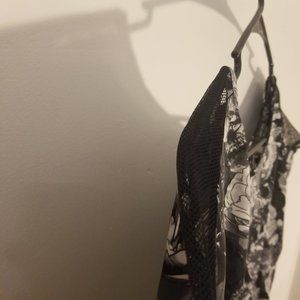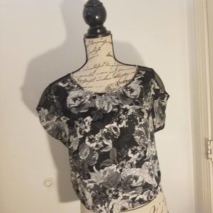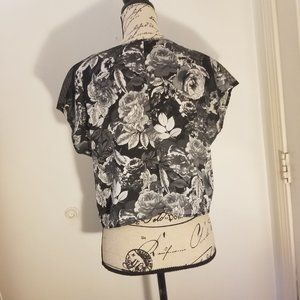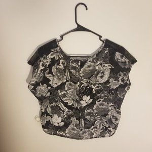 BONGO Floral, Loose Fit Crop Top w/ Mesh Shoulders