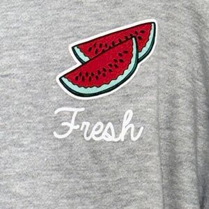 Fun and casual BONGO cropped sweatshirt featuring embroidered watermelon “Fresh” graphic. Boxy fit, lightweight cotton blend — perfect for layering with high-waisted jeans or leggings.