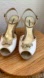 Chic BONGO wedges with a cork heel. White and tan straps. Stylish and comfortable.