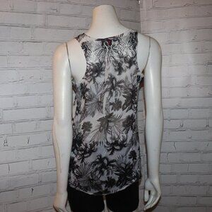 📏 Size: Medium 🎨 Color: White & Gray 👚 Details: Sheer fabric · Sleeveless · Great condition