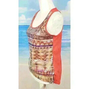 BONGO Tank Top RED SEQUIN Southwestern Shirt Racerback STRETCH Lightweight Med