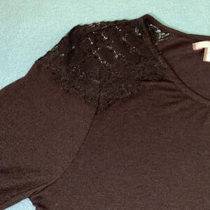 BONGO lace shoulder details black stretchy short sleeve top size S