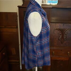 BONGO BUTTON up tank top gret shape casual blue gray white women's comfy shirt