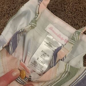 a hint of gold shimmer, a elastic scrunch in back, top 2 buttons are usable, straps have a tie bow accent and pf course matching bloomers!! ♥️ Bonnie baby size 18m, Excellent gently used condition!!