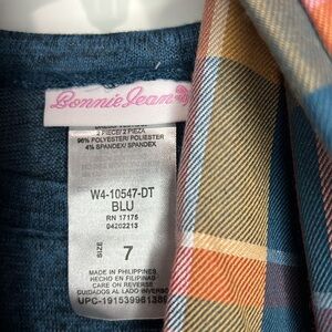 BONNIE JEAN BLUE DRESS WITH PLAID SCARF