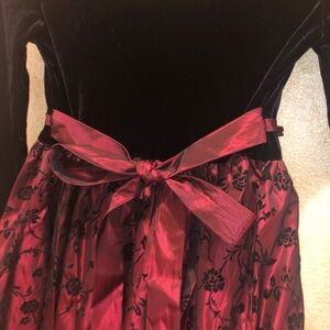 BONNIE JEAN NEW YORK GIRLS DRESS SIZE 8 BLACK VELVET TOP PORTION AND TWO TONE BURGUNDY/GARNET AND BLACK BOTTOM OF DRESS. This dress is stunning, worn once, original owner and stored in smoke free environment. My adult daughter wore this dress for the Christmas holiday over 20 years ago and it is still one of the most beautiful dresses out there. Bin-B.