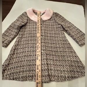 BONNIE JEAN GIRLS DRESSY COAT. SZ 2T LIGHT/DARK GRAY/PINK w/FAUX PINK FUR COLLAR