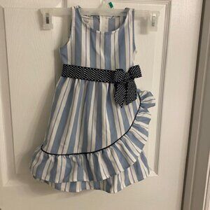 BONNIE JEAN Girl's Blue/White Striped Party Dress with bow Size 3T