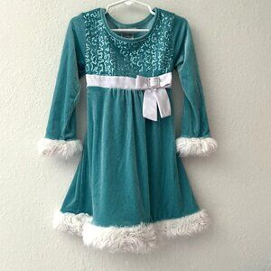 BONNIE JEAN VELOUR FAUX FUR CHRITMAS HOLIDAY SPARKLE SEQUIN DRESS