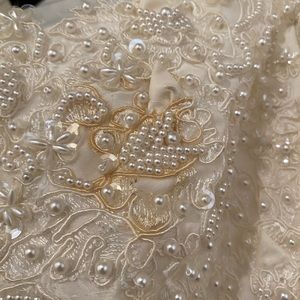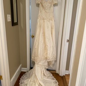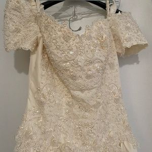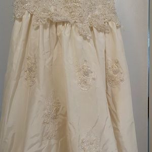 BONNY GORGEOUS SIZE 12 DETAILED WEDDING DRESS WITH GOLD BEADING ON THE FRONT
