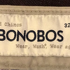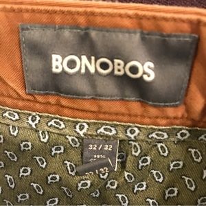 Bonobos chinos in good shape. Subtle light gray/blue hue. Including a free pair of 32x32 rust Bonobos pants that have rip in leg snd belt loop that needs to be sewn back in place.