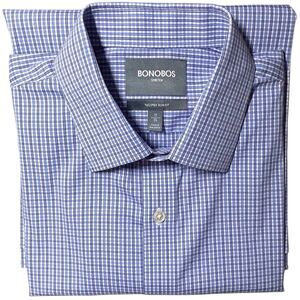 BONOBOS Mens Jetsetter Slim Fit Shirt Size 17x35 Blue Check