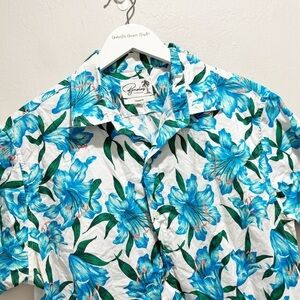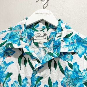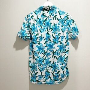 BONOBOS Men’s Blue Hawaiian Print Floral Short Sleeve Shirt Standard Fit M