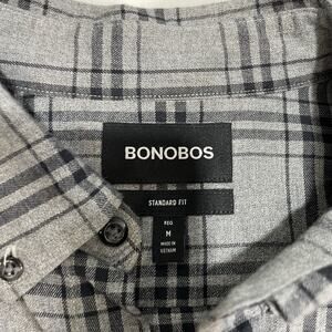BONOBOS Men’s Plaid Gray Black Checks Long Sleeve Cotton Shirt Sz Medium