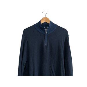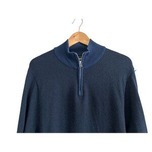 BONOBOS Merino Wool 1/4 Zip Sweater Blue Gray Herringbone Size Med