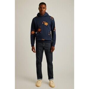 BONOBOS Supersoft Fleece Hoodie Floral Embroidered Long Sleeve Navy M New 283609