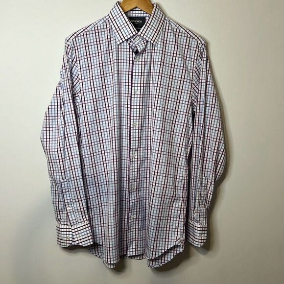 BONOBOS Men’s Slim Fit Professional Dress Shirt 16 | 35 Plaid Purple Blue White
