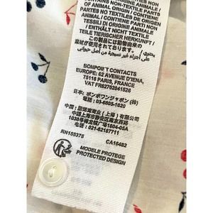 Bonpoint is such a superior quality, this cute blouse has sweet cherry decorated throughout, including a ruffled neck button down. White, black an red. Will go with everything dressed up or down