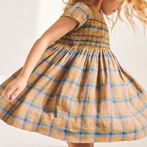 Kids' Duchesse Checked Linen Dress In Nutmeg Enhance your littlest love’s luxury edit with the Duchesse dress from Bonpoint. It’s cut from lightweight linen in a rich, checked print, with hand-embroidery at the smocked panel for a charming touch.