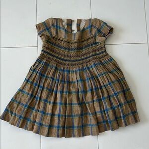 BONPOINT Kids' Duchesse Checked Linen Dress In Nutmeg 100% Linen Girls 8