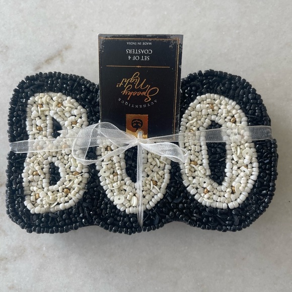 BOO!! Beaded coasters! 4 pack! Excellent quality! Great for entertaining or cocktail hour! Back lining!! New
