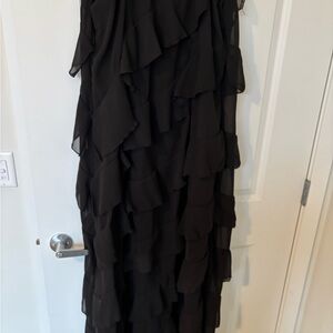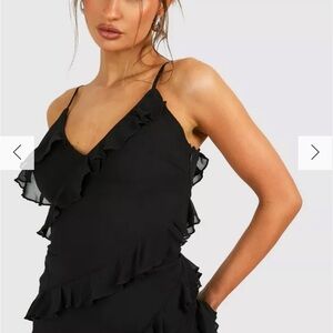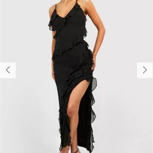 BOOHOO BLACK RUFFLE DRESS W SLIT