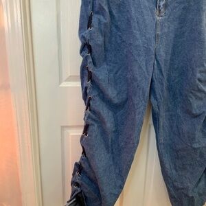 BOOHOO BLUE LACE UP JEANS PLUS SIZE 18 NAVY LACE UP SUPER CUTE FUN BOHO Y2K 0330