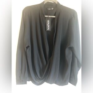 NEW NEVER WORN BOOHOO LONG SLEEVE DRAPED BLOUSE COLOR: BLACK SIZE: US 16