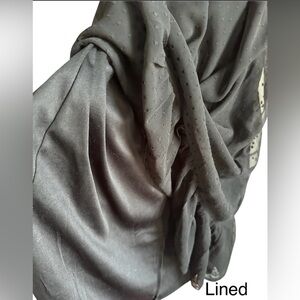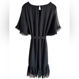 Beautiful black midi dress flowy, but with a belt to accentuate your curves. This dress is very sheer but has a lining.