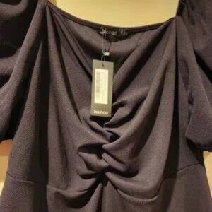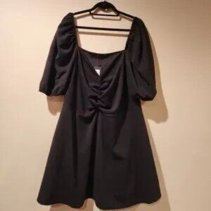 BOOHOO PLUS black short sleeve skater dress ruched front size 22