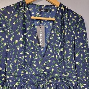 BOOHOO RUCHED WAIST FLORAL TEA DRESS NEW SIZE 8
