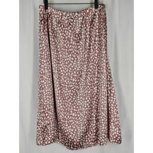 BOOHOO WOMENS MIDI SKIRT - PINK SATIN SPLATTER DOT - HIGH SLIT - SIZE 12